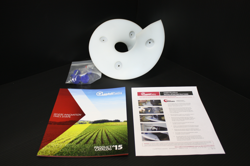 Steel isn't always second rate. As long as an auger has the protection of Lundell Plastics' UHMW wearshoes, it's ok by us. Our wearshoes will outlast steel 2 to 1. You can still bring many of the benefits of plastic flighting to your steel auger. The Ultra High Molecular Weight Polyethylene(UHMWPE) is pre-formed to fit onto new or worn steel auger flighting, thus extending the life of any auger.UHMW Wearshoes are easy to install thanks to pre-drilled holes and poly-capped bolts.it's easy to give your worn out auger a high-tech facelift.UHMW poly provides a slick surface for grain to flow freely and prevents build-up. plus the lower friction coefficient of UHMW reduces power consumption. this will reduce strain on drive components and increase your harvesting rate.
