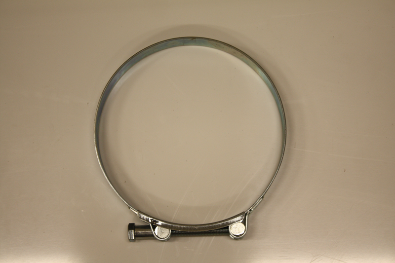 Heavy Duty Steel T-bolt Clamp. Zinc plated to resist corrosion.