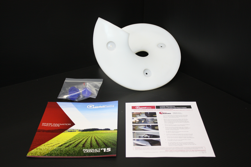 Steel isn't always second rate. As long as an auger has the protection of Lundell Plastics' UHMW wearshoes, it's ok by us. Our wearshoes will outlast steel 2 to 1. You can still bring many of the benefits of plastic flighting to your steel auger. The Ultra High Molecular Weight Polyethylene(UHMWPE) is pre-formed to fit onto new or worn steel auger flighting, thus extending the life of any auger.UHMW Wearshoes are easy to install thanks to pre-drilled holes and poly-capped bolts.it's easy to give your worn out auger a high-tech facelift.UHMW poly provides a slick surface for grain to flow freely and prevents build-up. plus the lower friction coefficient of UHMW reduces power consumption. this will reduce strain on drive components and increase your harvesting rate.