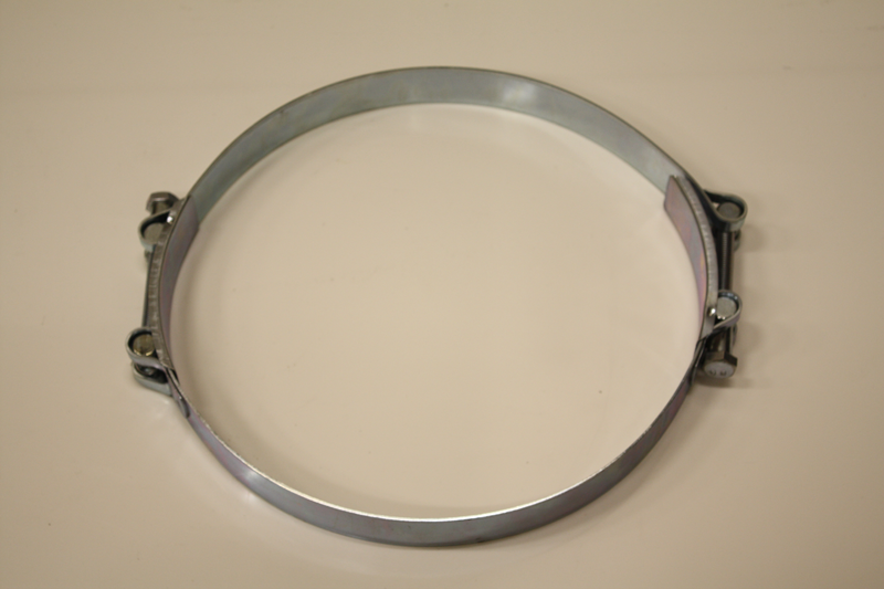 Heavy Duty Steel T-bolt Clamp. Zinc plated to resist corrosion.